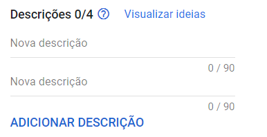 O Google Ads exige que os usuários adicionem no mínimo 2 títulos para que o anúncio seja vinculado corretamente. Eles devem ser chamativos para conseguir atrai a atenção do cliente e ser relacionados ao seu produto ou serviço. Alguns exemplos de títulos que você pode usar são: Promoção, Oferta, Desconto, etc.