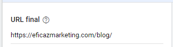 A primeira coisa a fazer na hora de criar o seu anúncio no Google Ads é criar a URL final, insira o link para o seu site ou loja. Lembre-se de adicionar HTTPS:// antes do site.