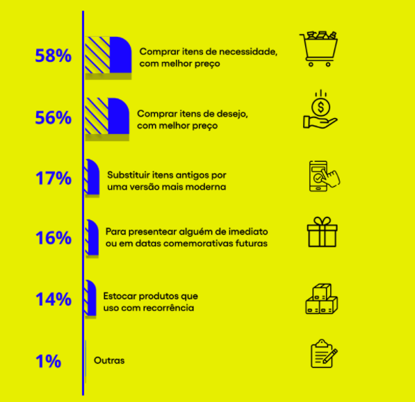 Vale a pena ressaltar que 58% dos respondentes da pesquisa irá aproveitar a data para encontrar itens de necessidade com preço melhor.