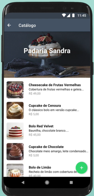 Para adicionar novos itens no catálogo, basta clicar no ícone de “+” e preencher com as informações do novo produto.