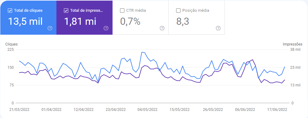 O Google Search Console é outra ferramenta gratuita que pode complementar o Analytics. Com ele você consegue informações sobre posicionamento das suas palavras-chave no Google, número de cliques e impressões que cada página teve, os termos que mais trazem visitantes para o seu site e muito mais.