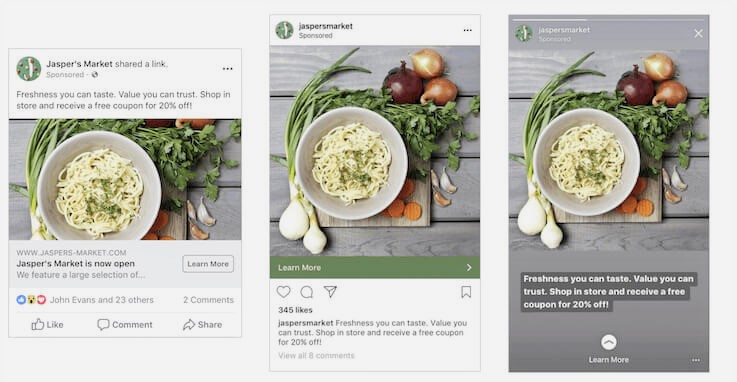 Agora, o Facebook e o Messenger também possuem a ferramenta Stories, por isso esses anúncios não ficam exclusivos para o Instagram.