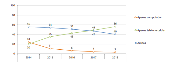 Apesar de o uso da internet ter sofrido expansão, para muitos, a única forma de navegar em sites brasileiros é o celular. A pesquisa TIC Domicílios revelou ainda que 58% dos brasileiros acessam a Internet exclusivamente através dos celulares.